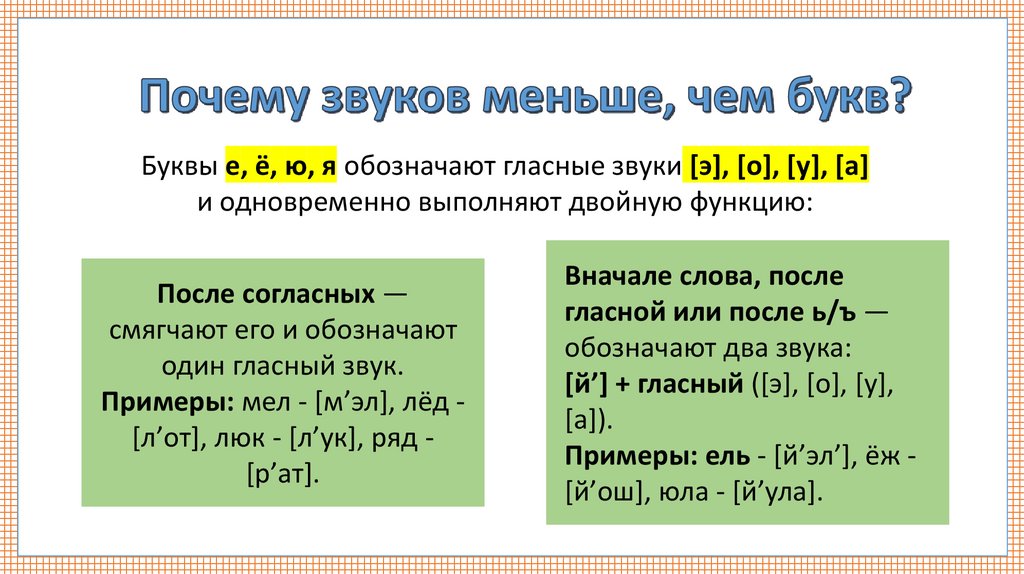 Примеры: ель - [й’эл’], ёж [й’ош], юла - [й’ула].