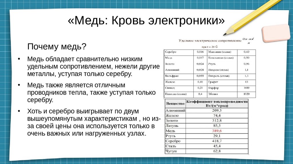 Медь в радиоэлектроникеОбласть применения , особенности материала