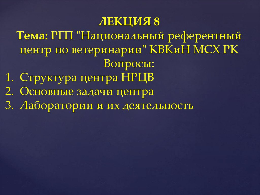 ЛЕКЦИЯ 8Тема: РГП "Национальный референтный