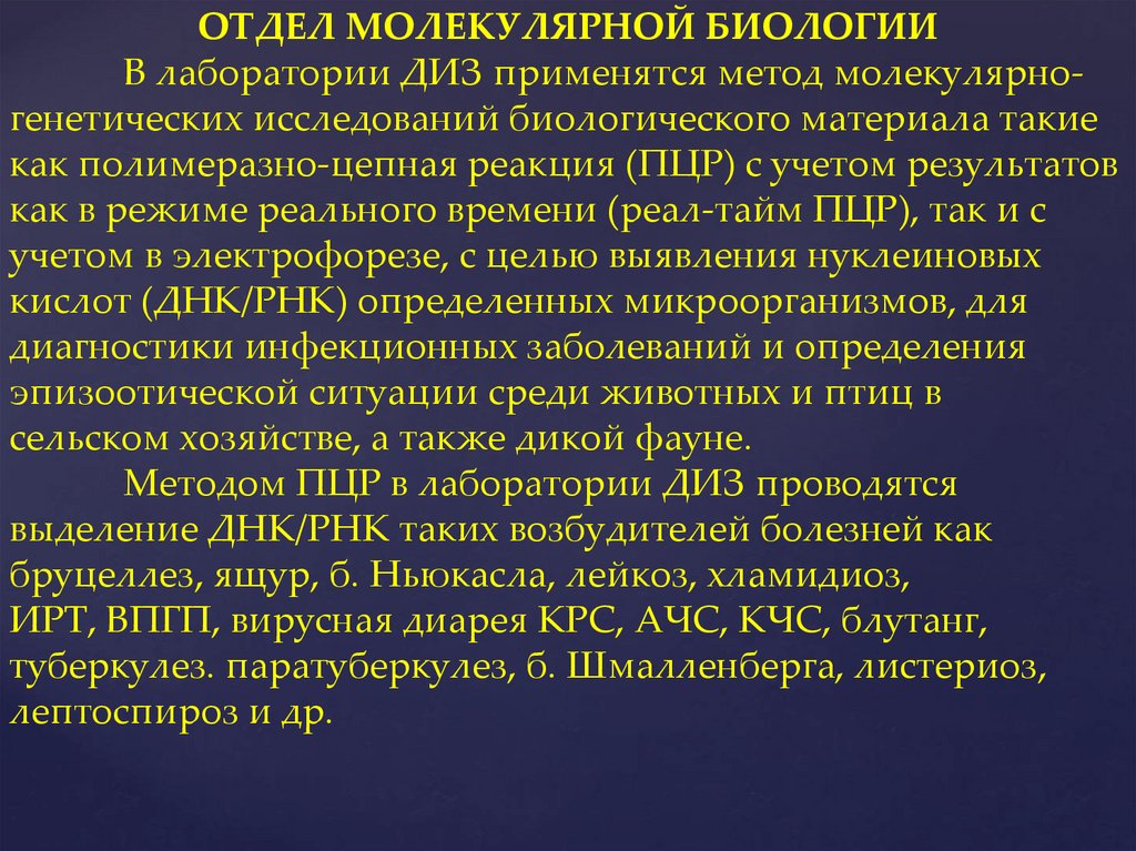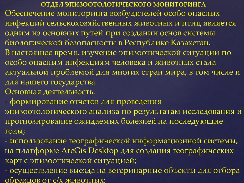 ОТДЕЛ ЭПИЗООТОЛОГИЧЕСКОГО МОНИТОРИНГАОбеспечение мониторинга возбудителей особо опасных