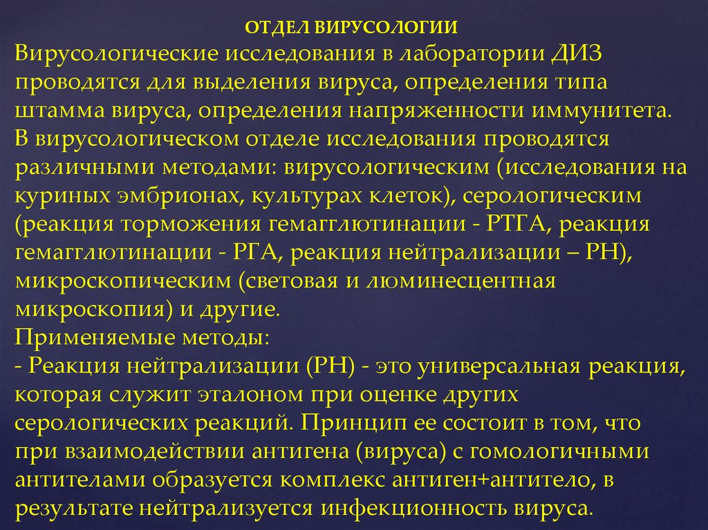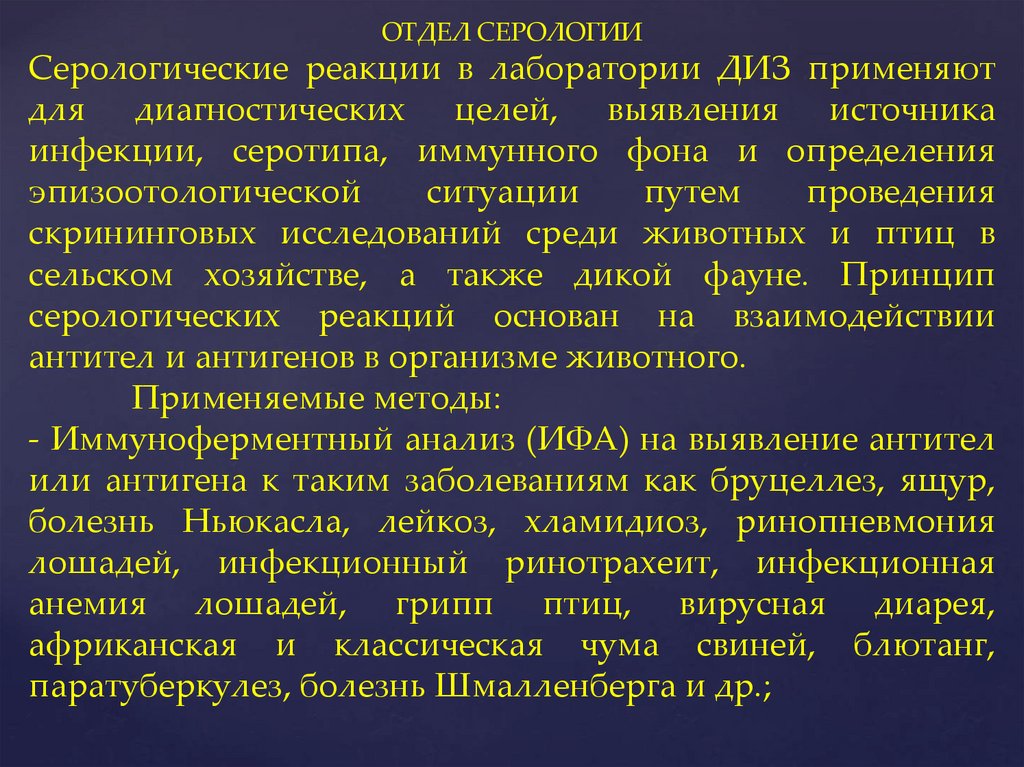 ОТДЕЛ СЕРОЛОГИИСерологические реакции в лаборатории ДИЗ применяют