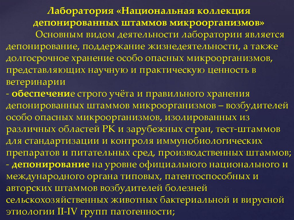 Лаборатория «Национальная коллекциядепонированных штаммов микроорганизмов»