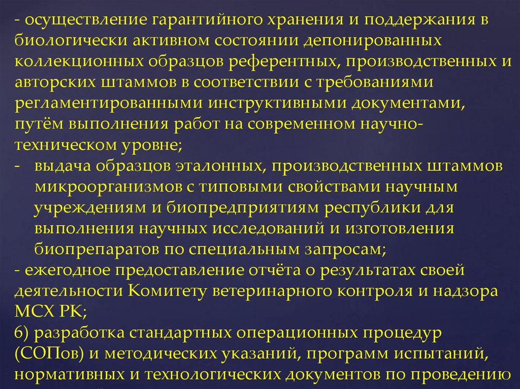 - осуществление гарантийного хранения и поддержания вбиологически активном состоянии депонированных