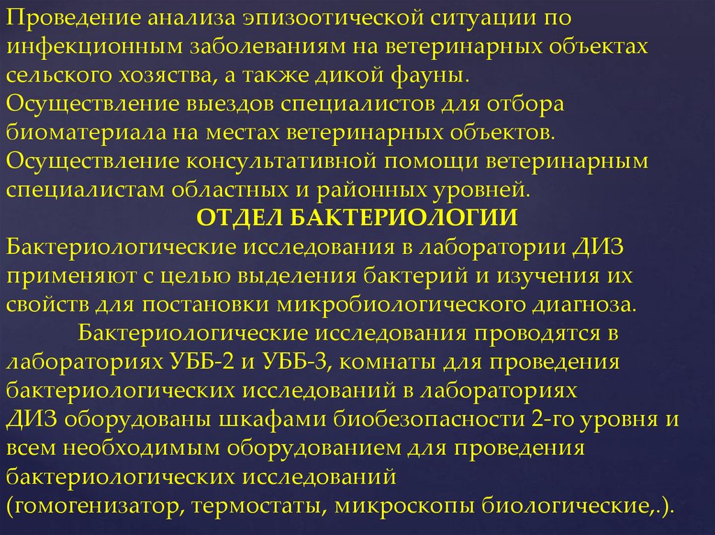 ОТДЕЛ БАКТЕРИОЛОГИИ