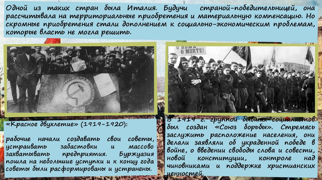 Одной из таких стран была Италия. Будучистраной-победительницей, она