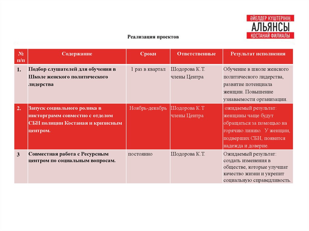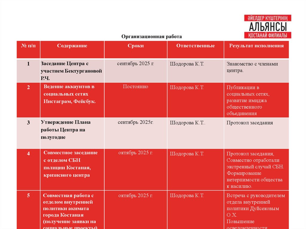 ПЛАН РАБОТЫЦентра гендерной поддержки