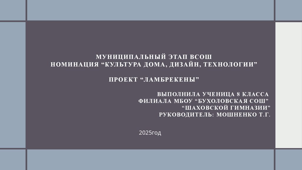МУНИЦИПАЛЬНЫЙ ЭТАП ВСОШНОМИНАЦИЯ “КУЛЬТУРА ДОМА, ДИЗАЙН, ТЕХНОЛОГИИ”