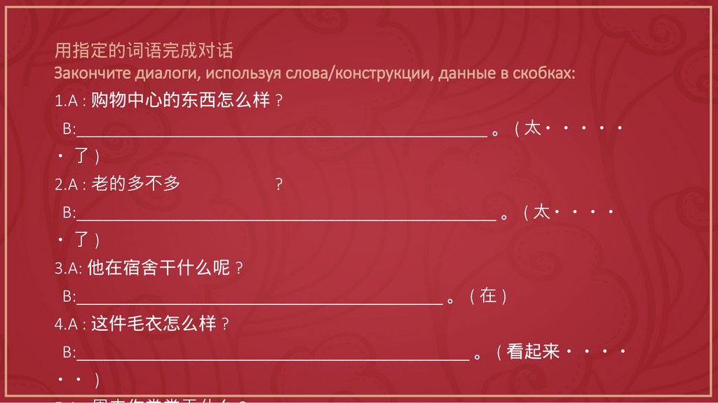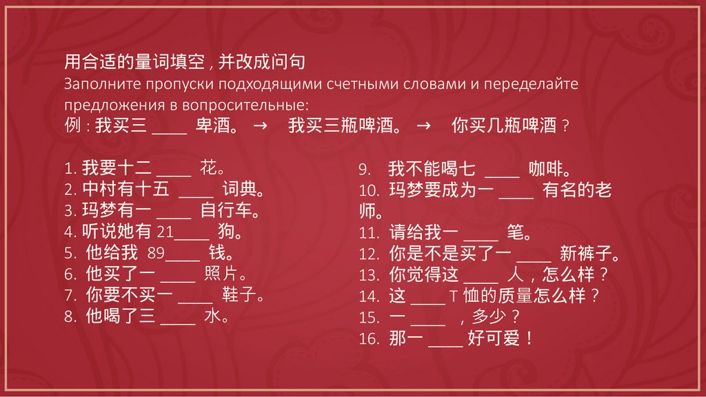 17. 对你来说 ______________ 怎么样 ( 现代 )