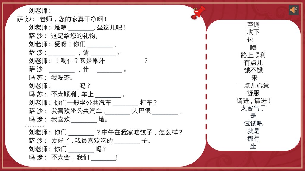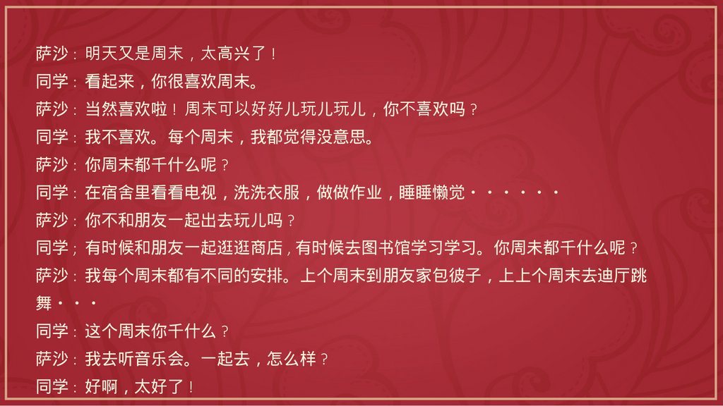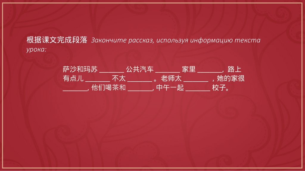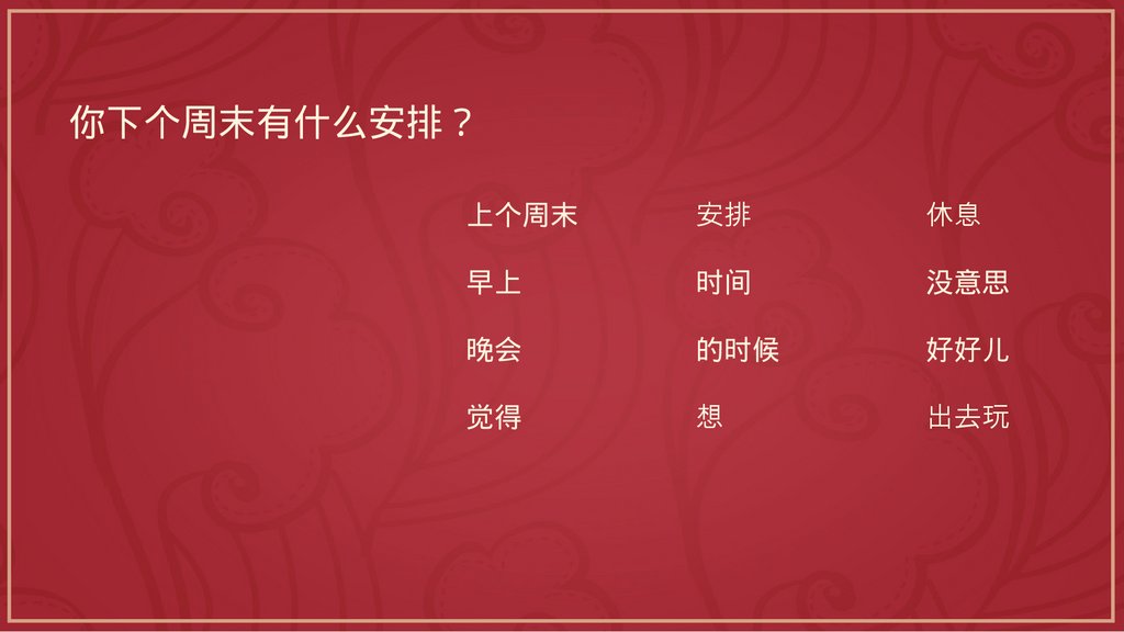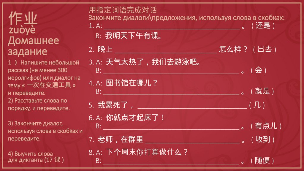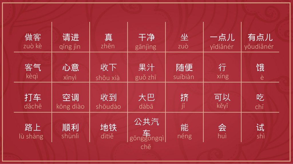 Ключевая лексика: 在 +место+V, 觉得 , 可能 , 出去玩儿 , 做客 , 打车 , 坐地