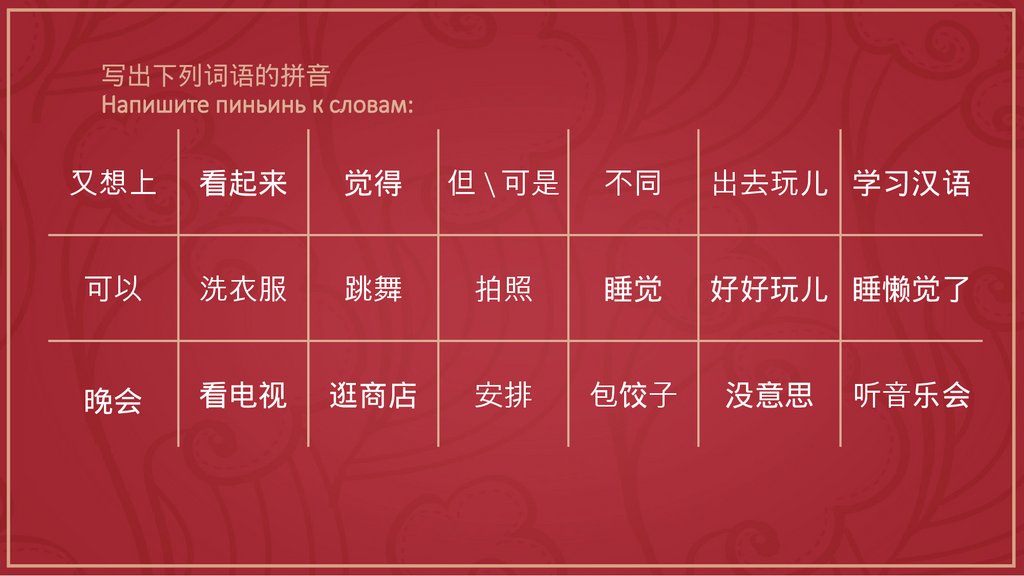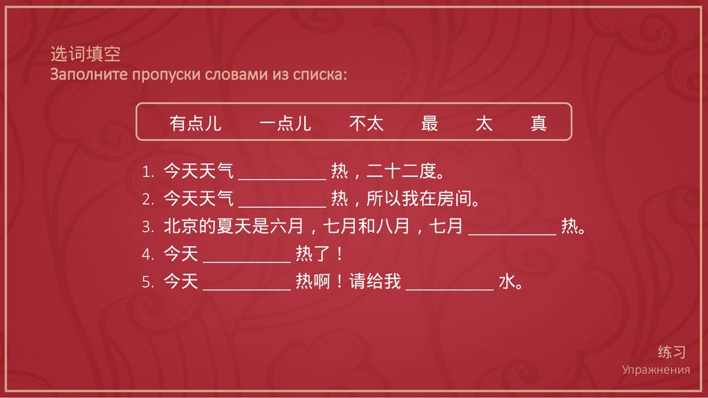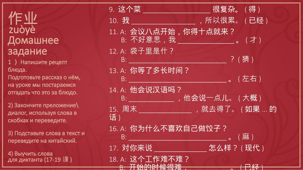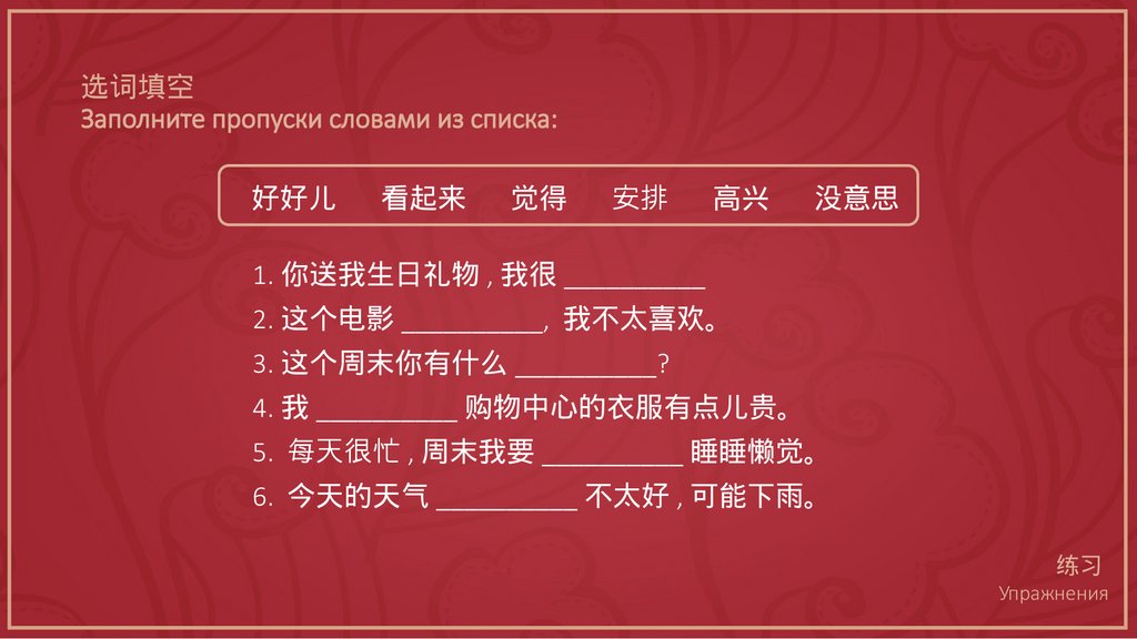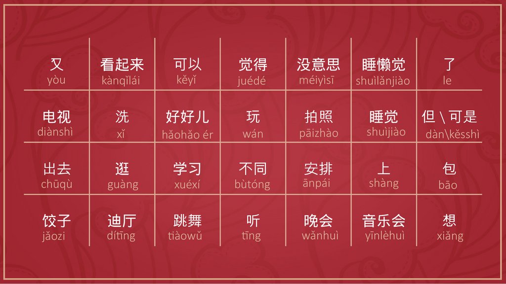 Ключевая лексика: 可以 , 能 , 太 ... 了 , 好好儿 , 先 ... 然后 ..., 又 ...