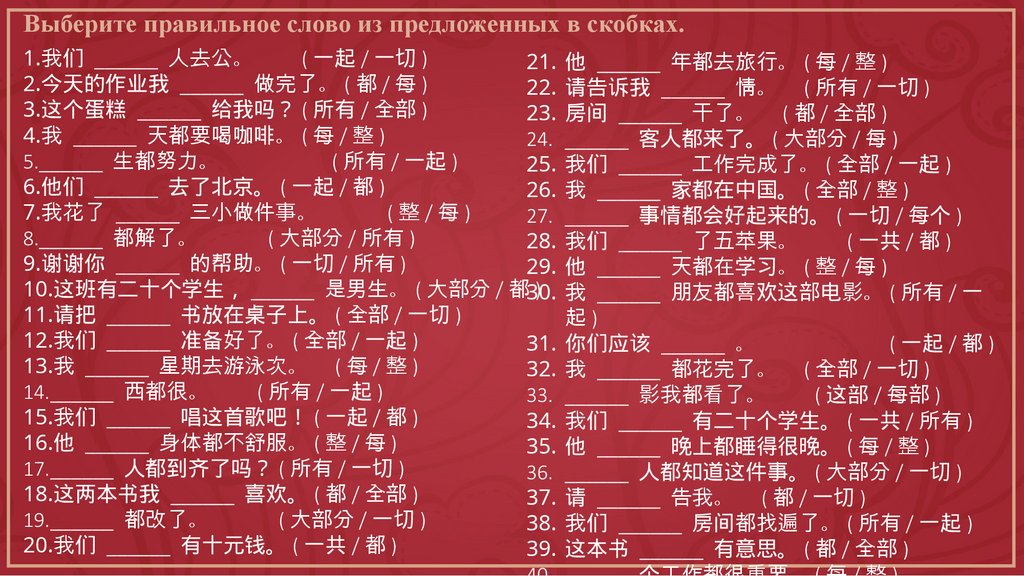 B: 对 ____________________ 很重要。 ( 所有 \ 一切 \
