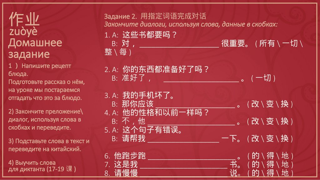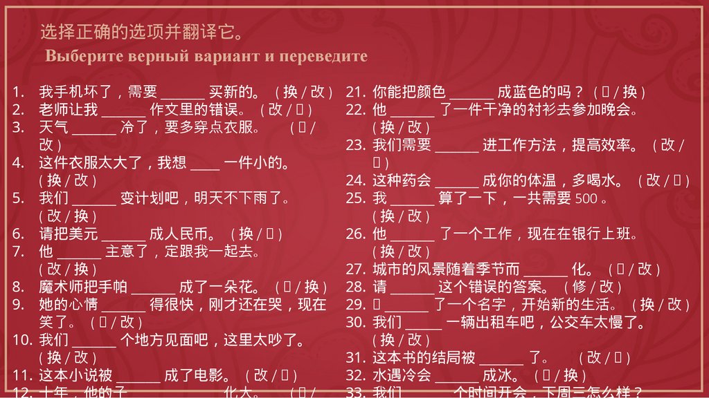 B: 请帮我 __________________ 一下。 ( 改 \ 变 \ 换 )