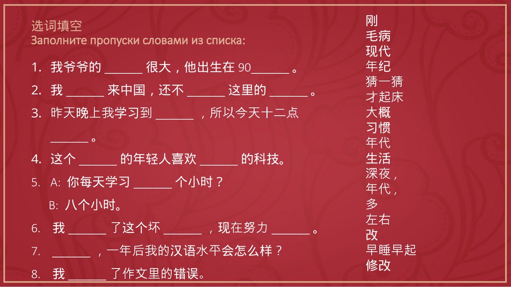 6. 我 ______ 了这个坏 ______ 现在努力 ______ 。