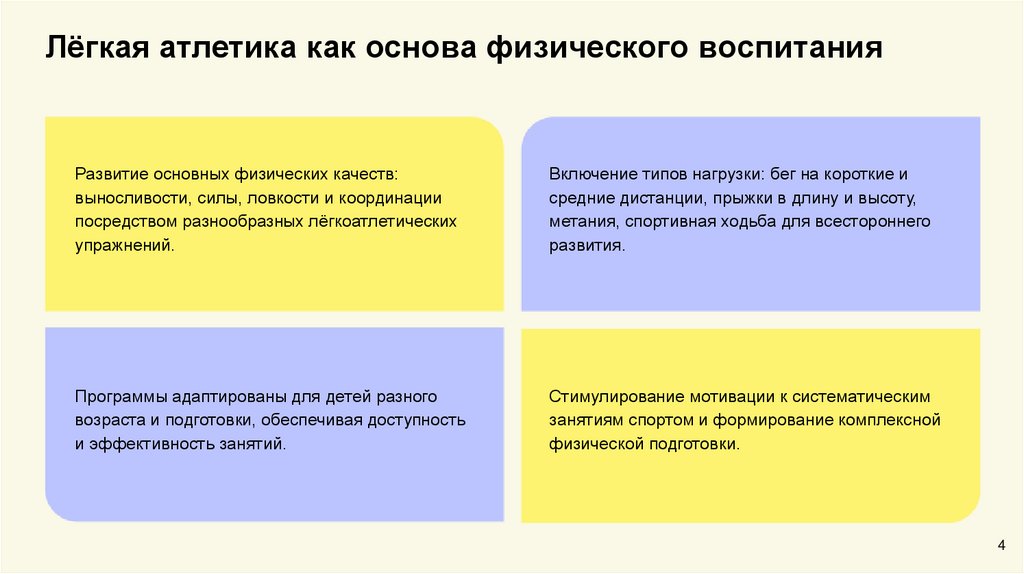 Лёгкая атлетика как основа физического воспитанияРазвитие основных физических качеств: