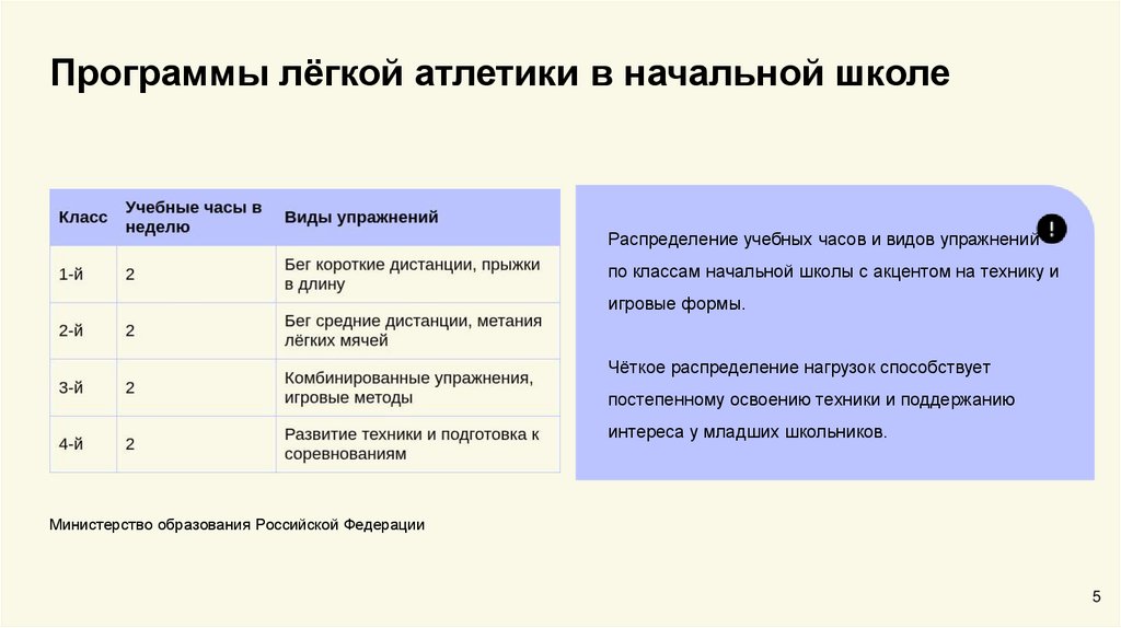 Программы лёгкой атлетики в начальной школеРаспределение учебных часов и видов упражнений