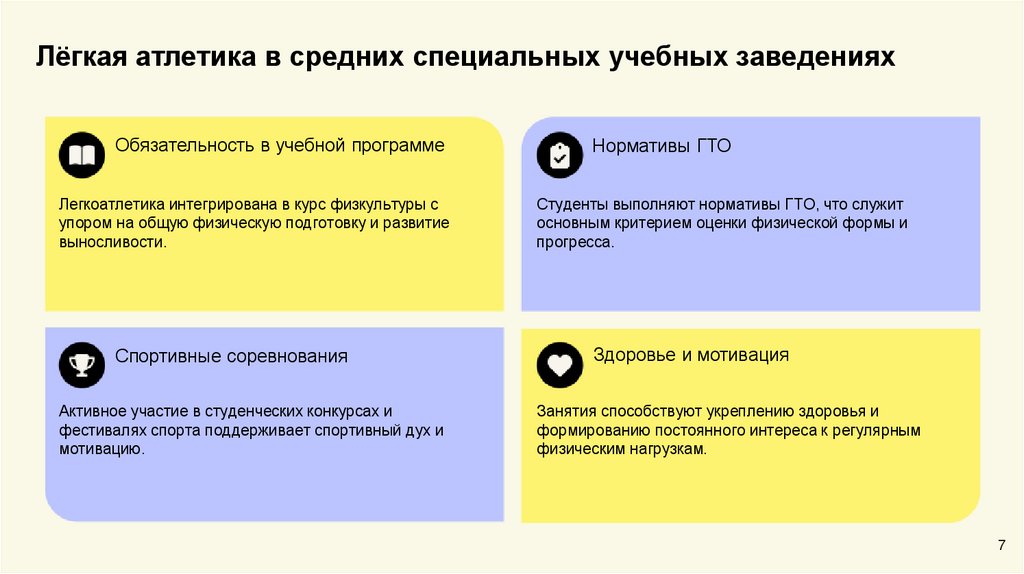 Лёгкая атлетика в средних специальных учебных заведенияхОбязательность в учебной программе