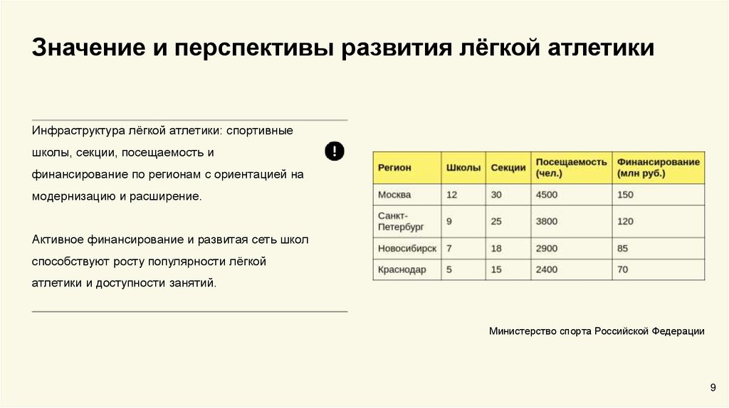 Значение и перспективы развития лёгкой атлетикиИнфраструктура лёгкой атлетики: спортивные