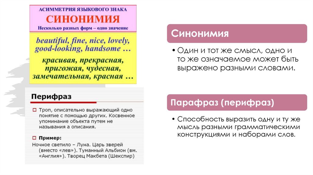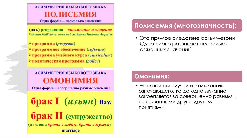 Полисемия (многозначность):• Это прямое следствие асимметрии.