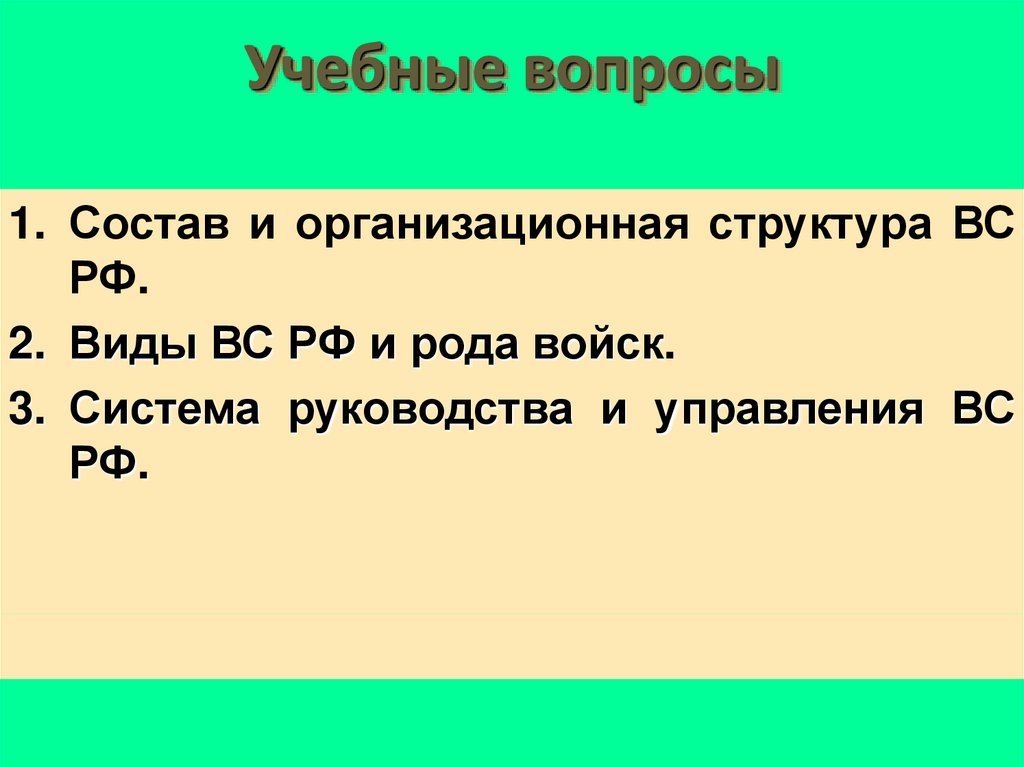 Учебные вопросы1. Состав и организационная структура ВС