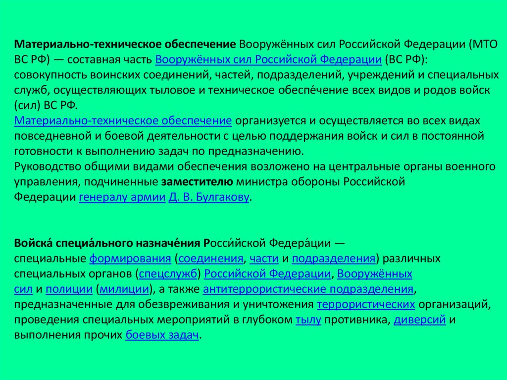 вещевого и другого имущества, материальных и иных ресурсов для ВС РФ;