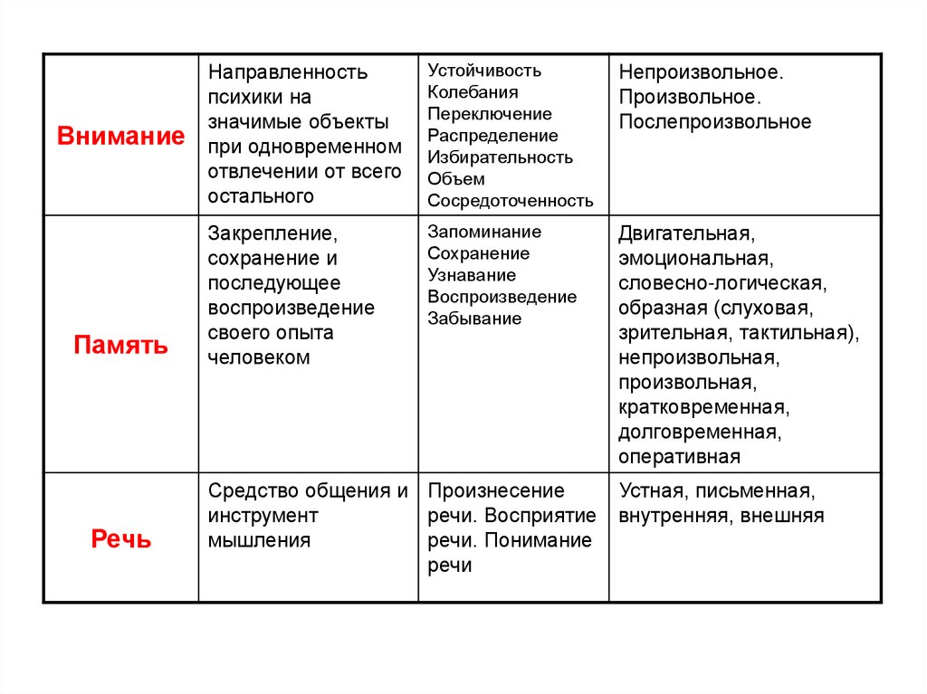 речь, мышление, внимание,