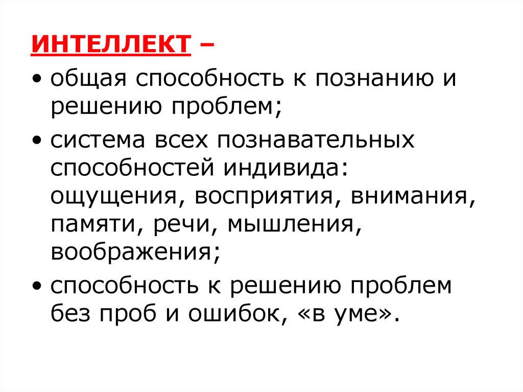 ИНТЕЛЛЕКТ –• общая способность к познанию и