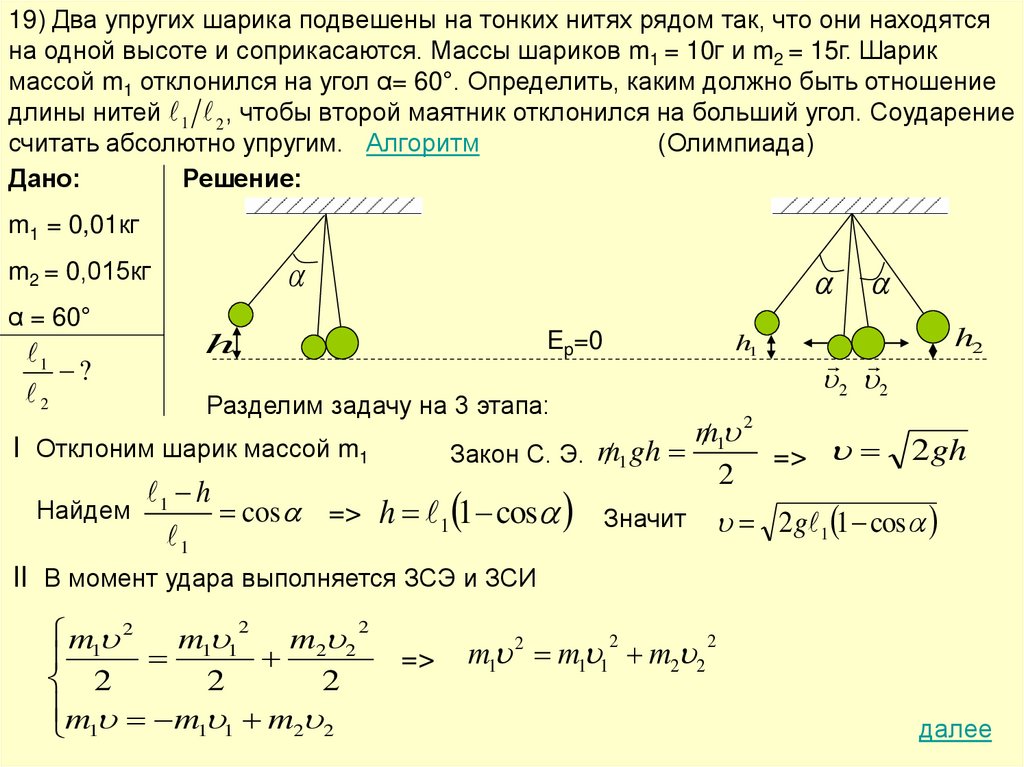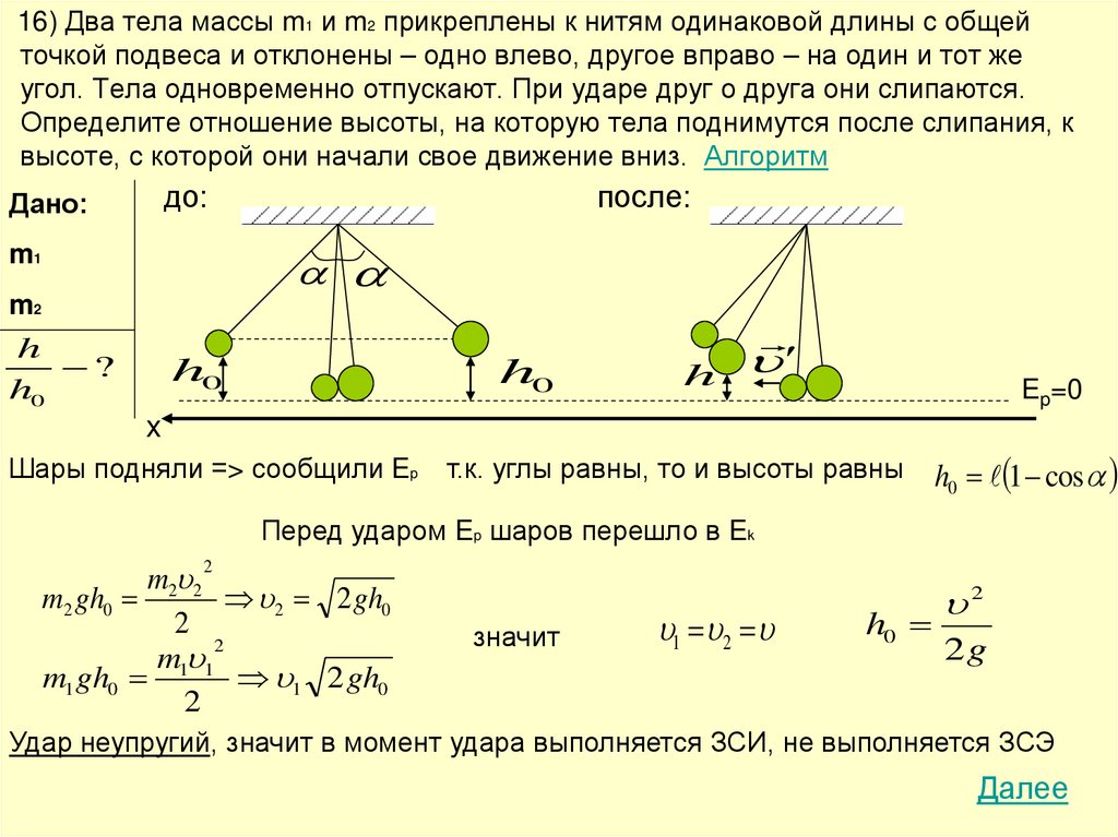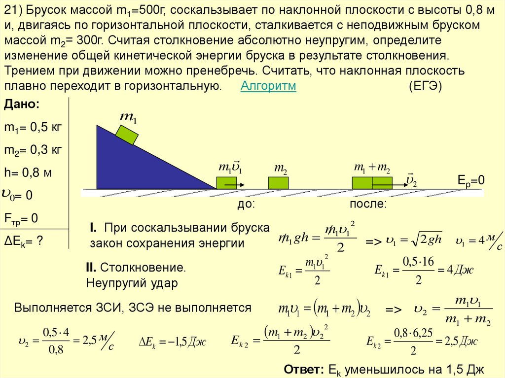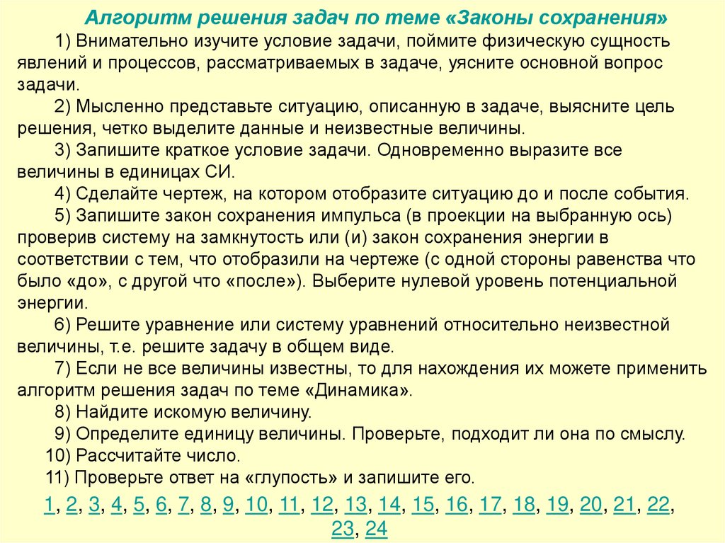 Алгоритм решения задач по теме «Законы сохранения»1) Внимательно изучите условие задачи, поймите физическую сущность