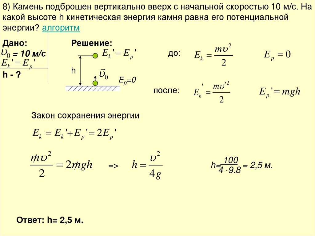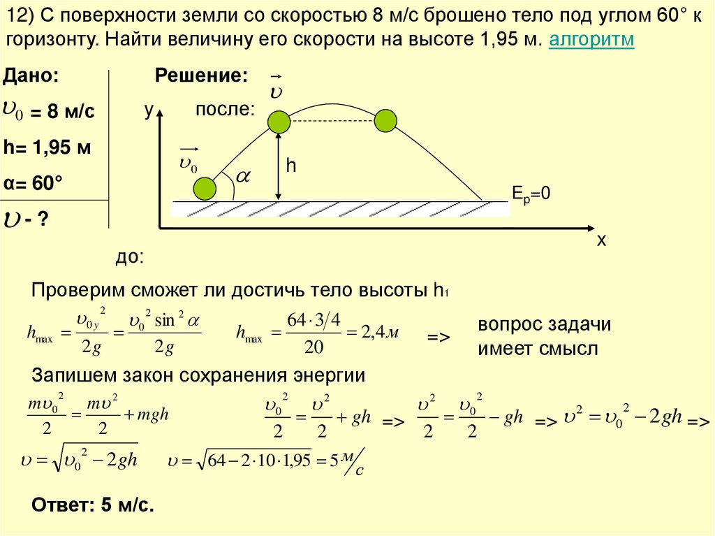 Сопротивлением воздуха пренебречь. Алгоритм