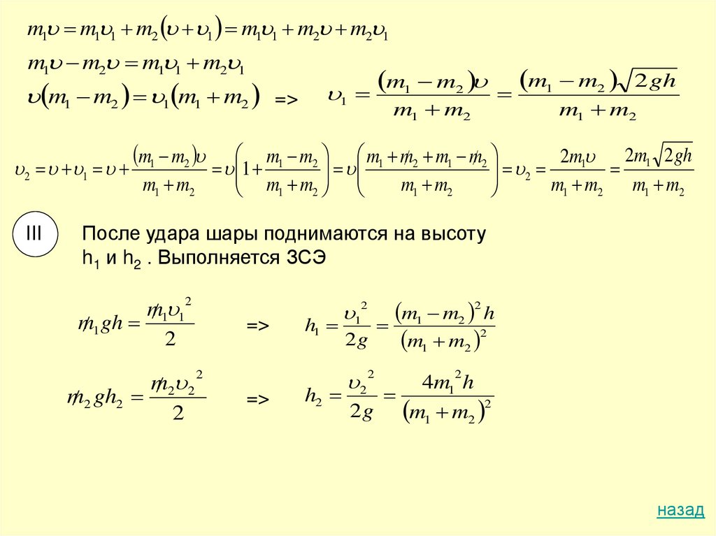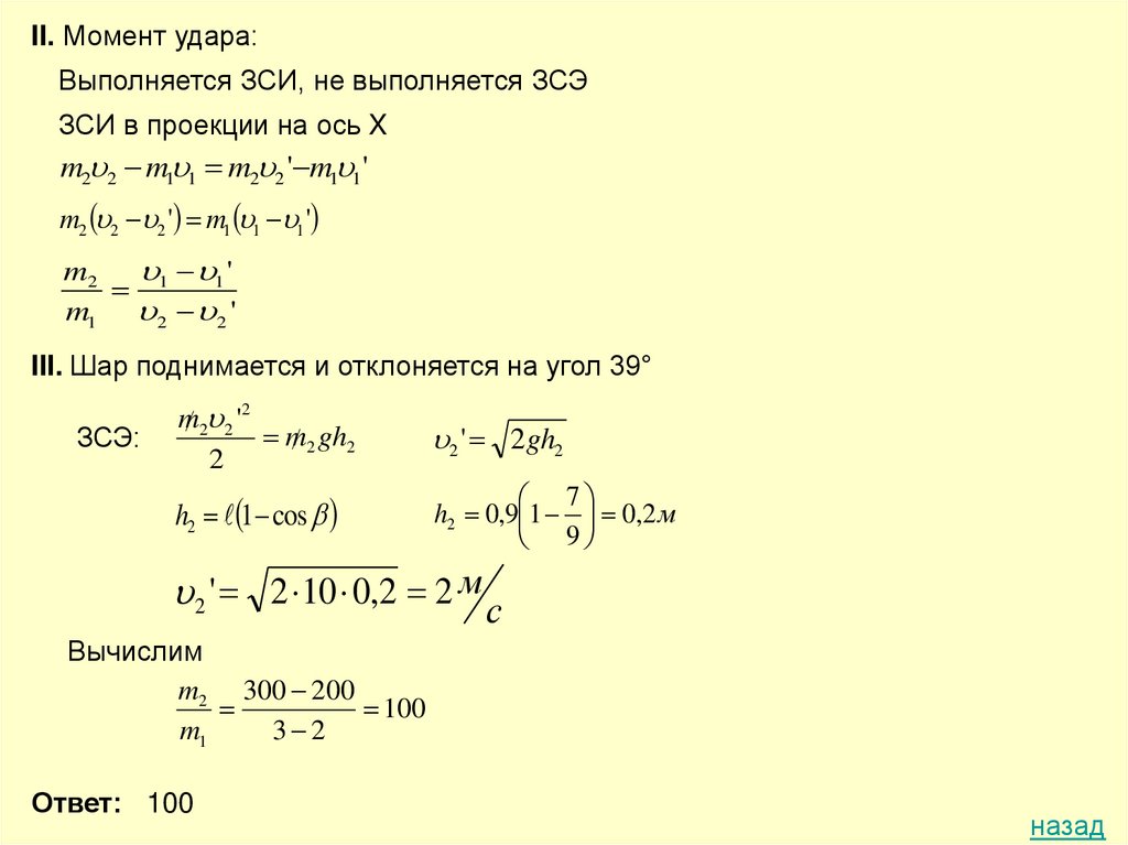 II. Момент удара:Выполняется ЗСИ, не выполняется ЗСЭ
