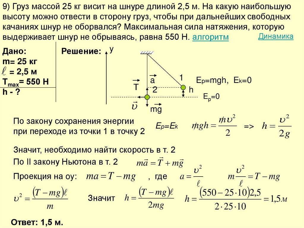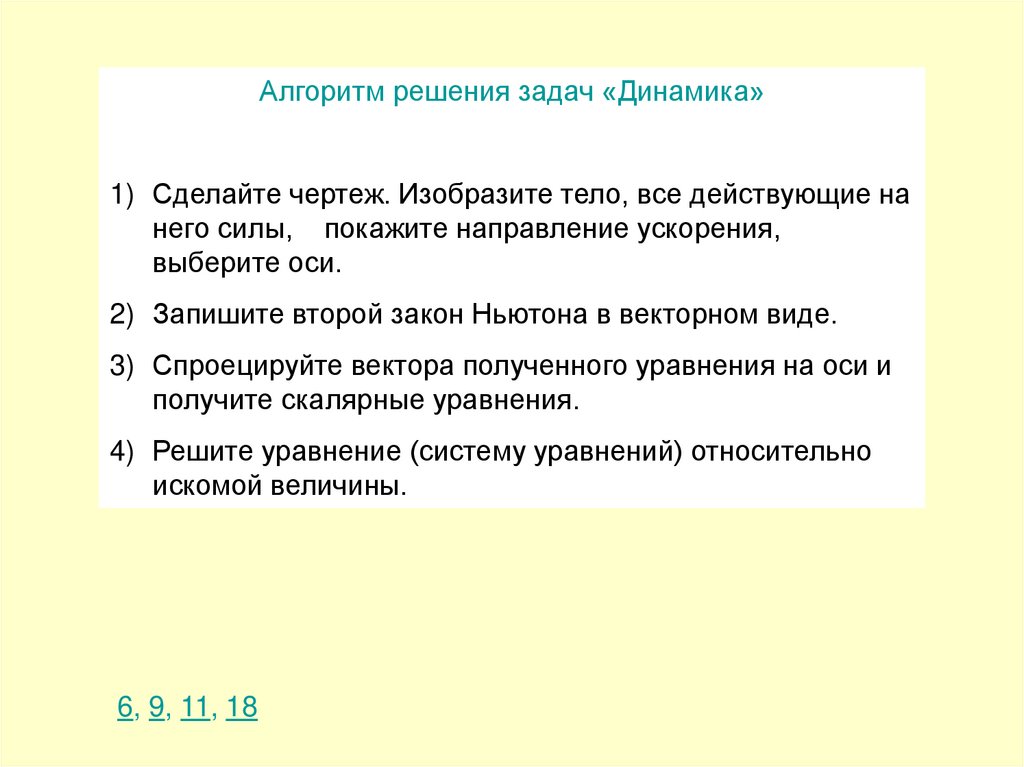 Алгоритм решения задач «Динамика»1) Сделайте чертеж. Изобразите тело, все действующие на