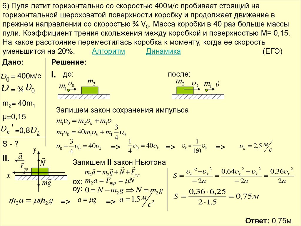 пуля массой m=10 г, имеющая в момент удара начальная скорость 400 м/с,