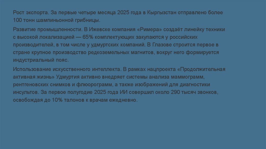 производителей, в том числе у удмуртских компаний. В Глазове строится первое в