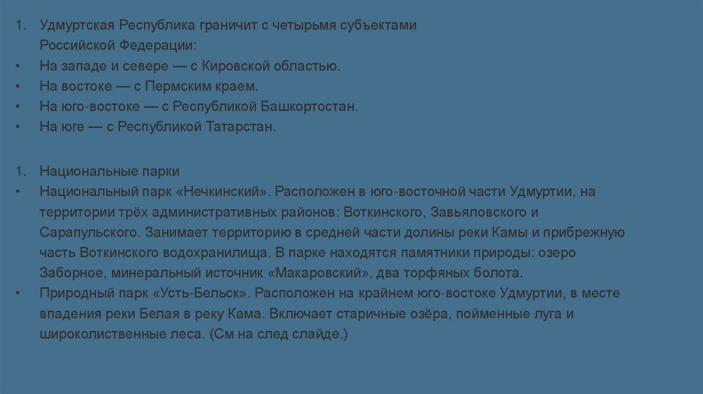 1. Удмуртская Республика граничит с четырьмя субъектамиРоссийской Федерации:
