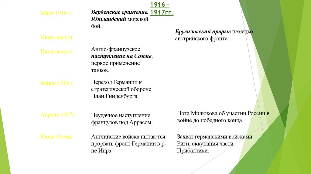 15. Практическое задание № 2. выделить ход основных военных действий в 1914-1916 гг., заполнить таблицу: