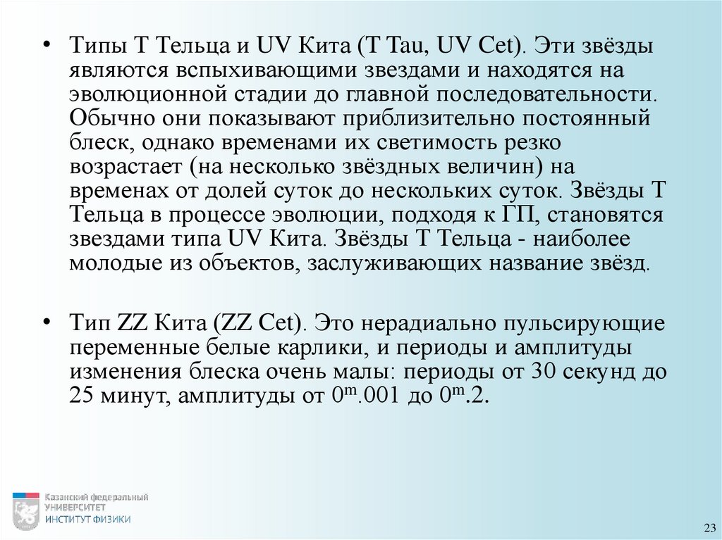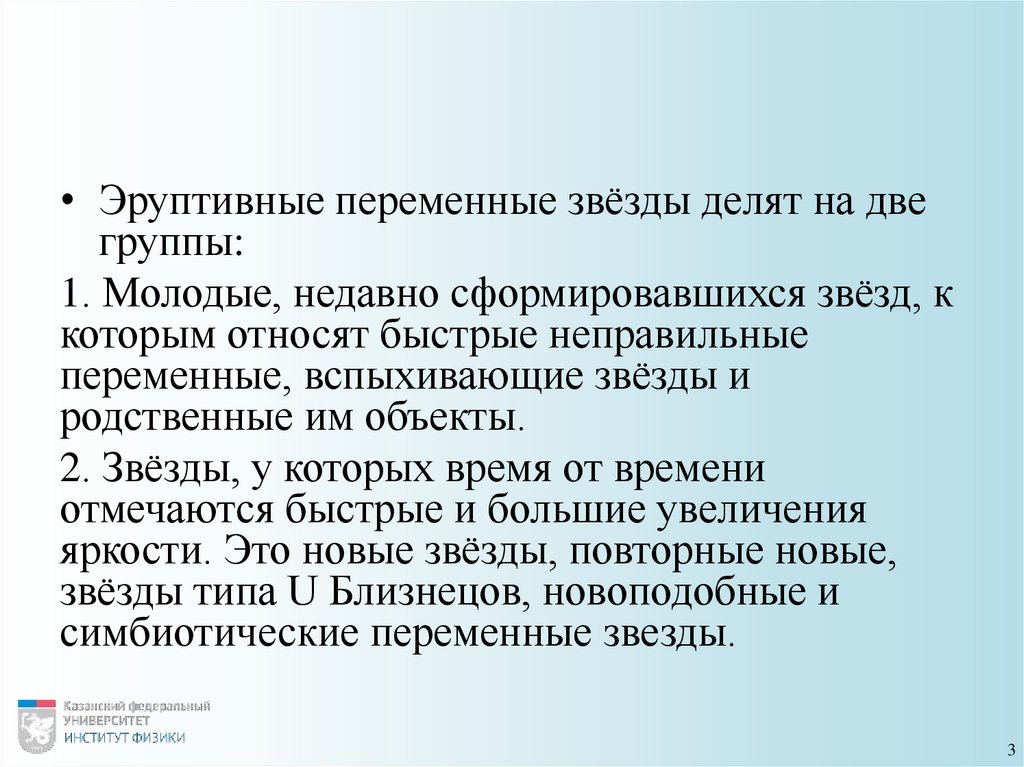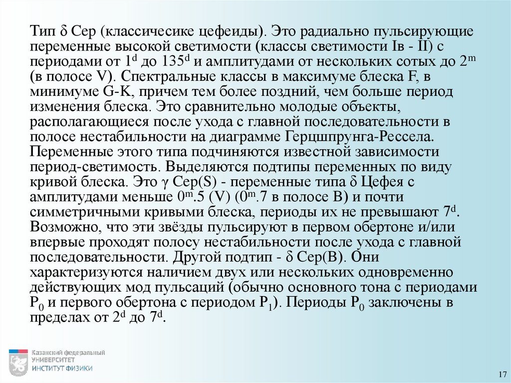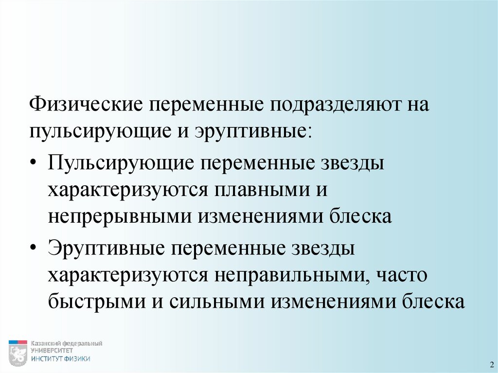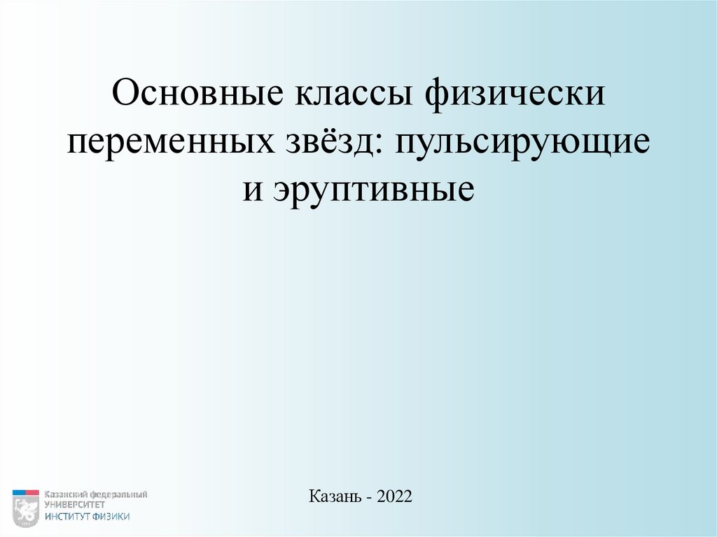 1. Основные классы физически переменных звёзд: пульсирующие и эруптивные