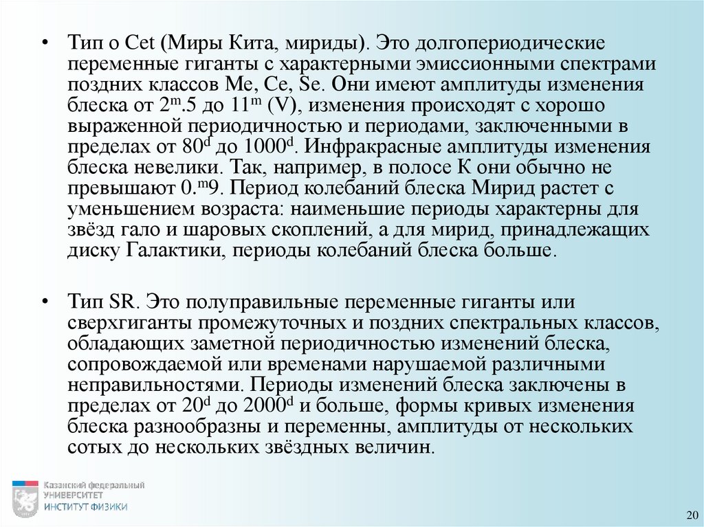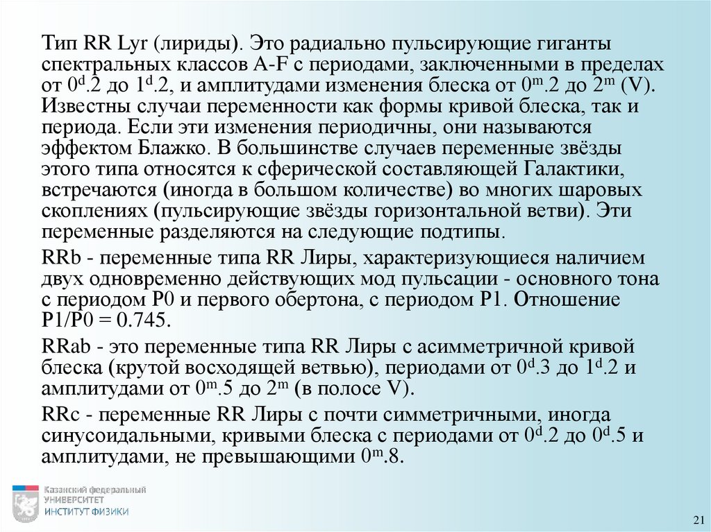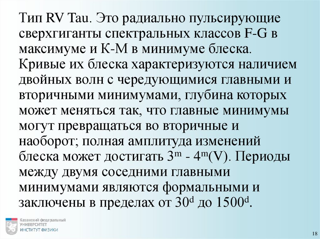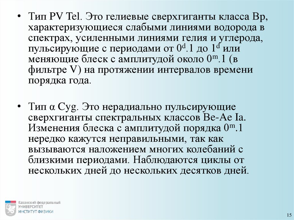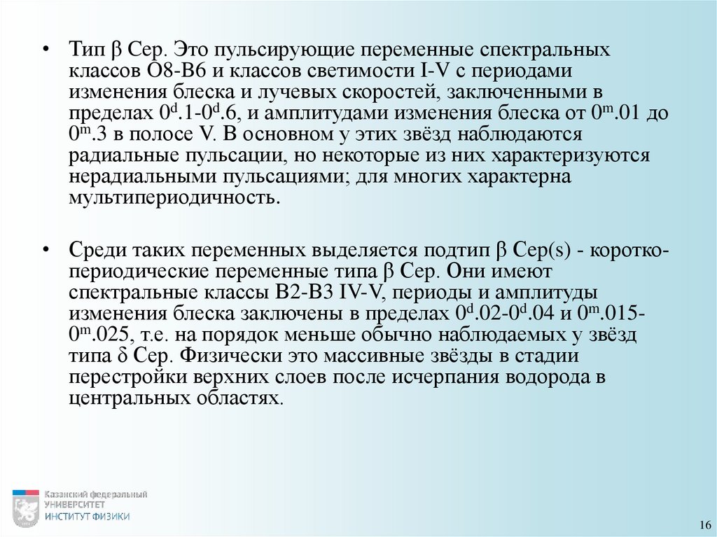 1. Основные классы физически переменных звёзд: пульсирующие и эруптивные