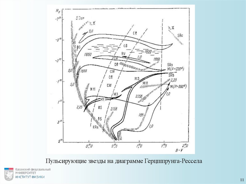 Пульсирующие звезды на диаграмме Герцшпрунга-Рессела11