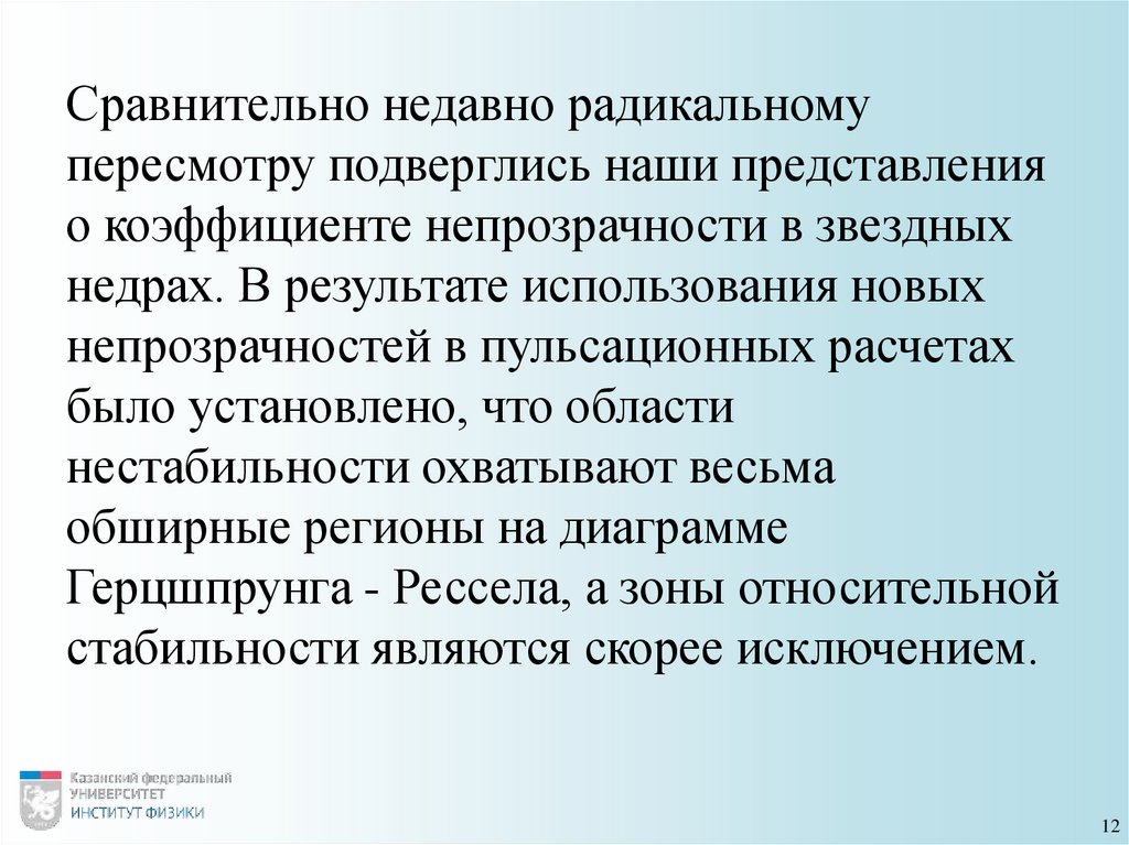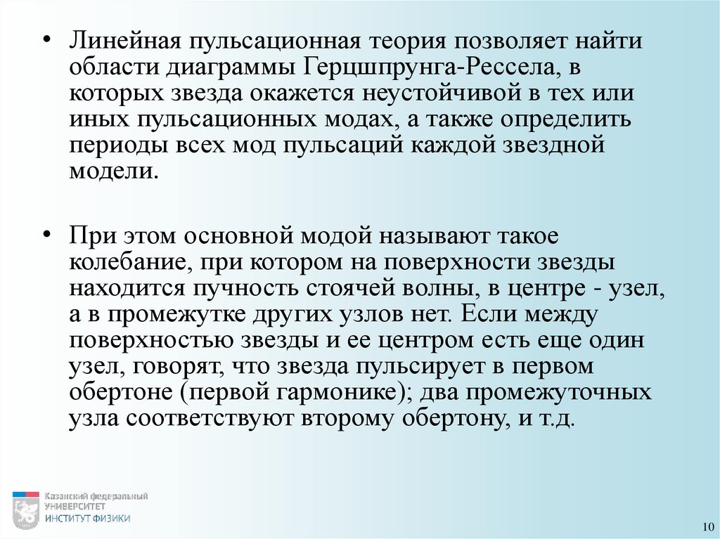 • Линейная пульсационная теория позволяет найтиобласти диаграммы Герцшпрунга-Рессела, в