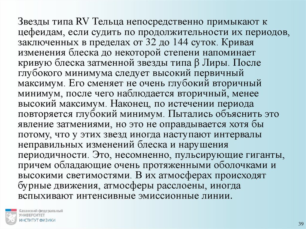 Звезды типа RV Тельца непосредственно примыкают кцефеидам, если судить по продолжительности их периодов,
