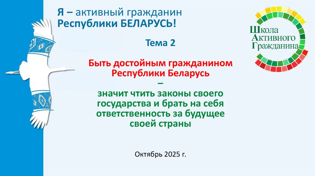 1. Тема 2 Быть достойным гражданином Республики Беларусь – значит чтить законы своего государства и брать на себя ответственность