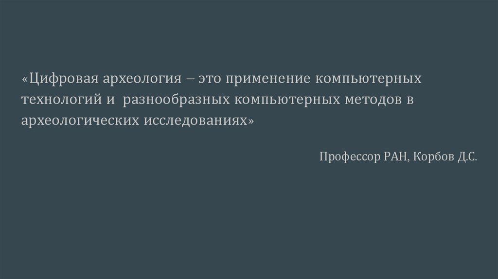 «Цифровая археология – это применение компьютерныхтехнологий и разнообразных компьютерных методов в