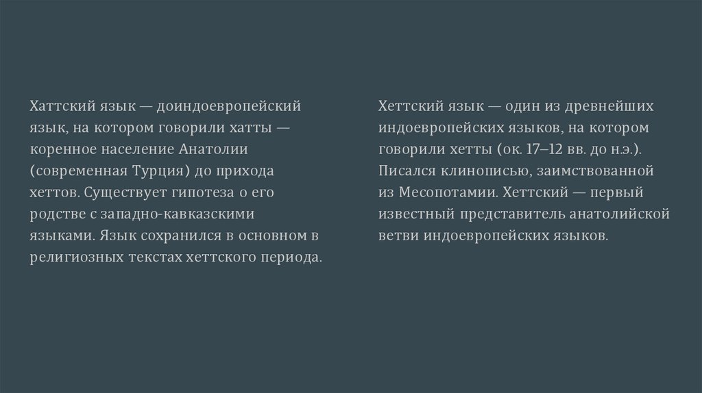 Хаттский язык — доиндоевропейскийязык, на котором говорили хатты —