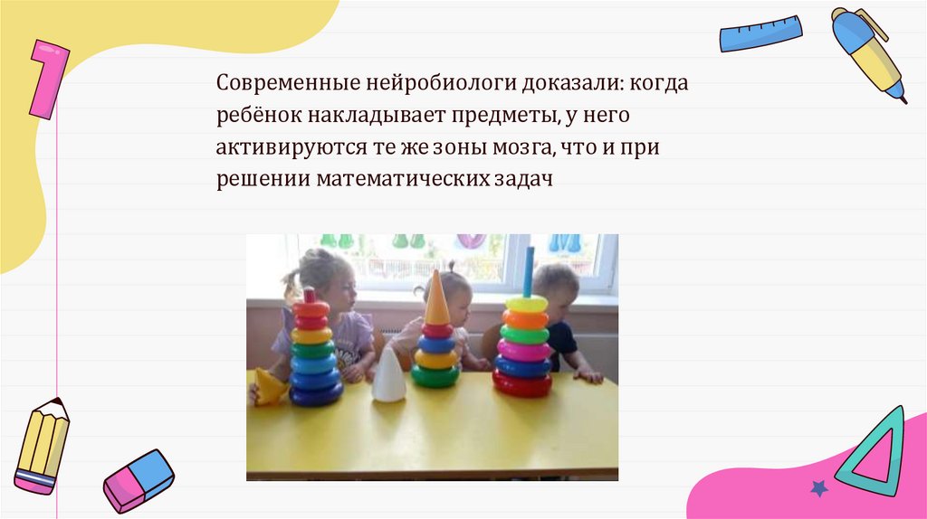 Современные нейробиологи доказали: когдаребёнок накладывает предметы, у него