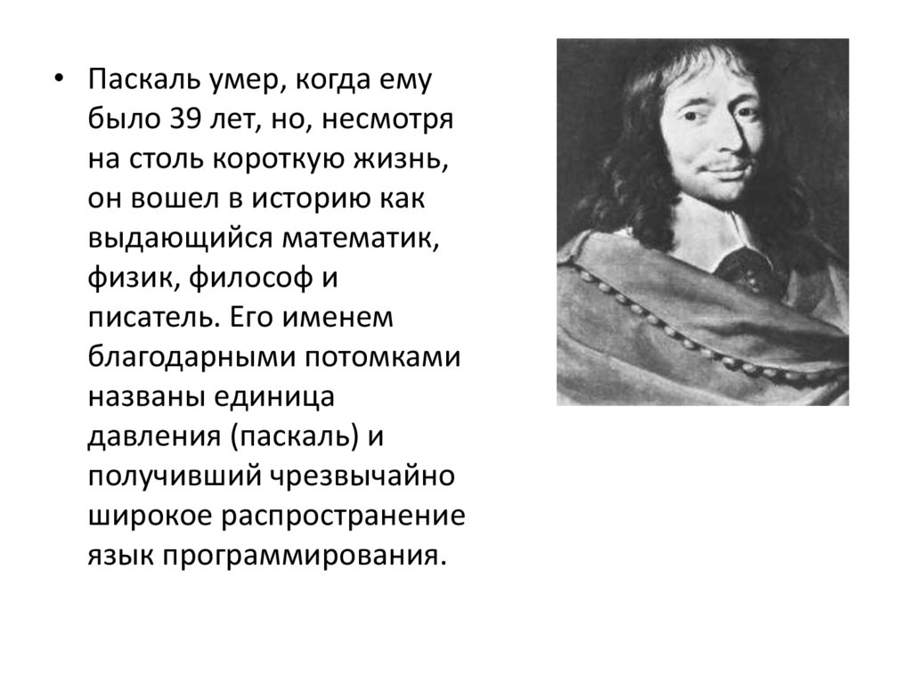 • Паскаль умер, когда емубыло 39 лет, но, несмотря