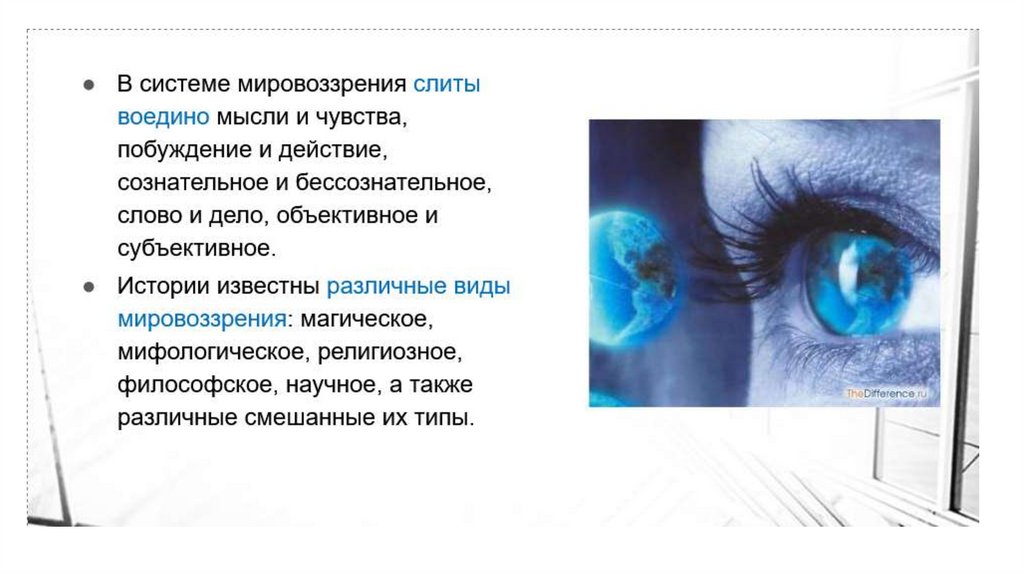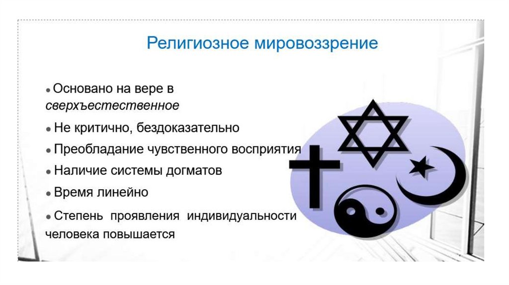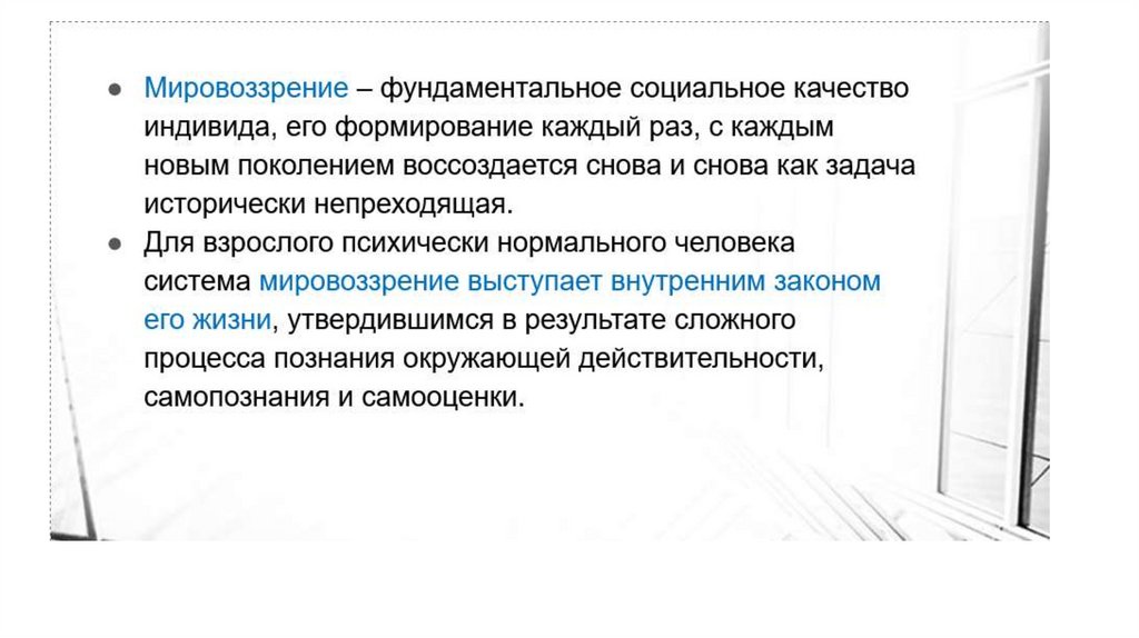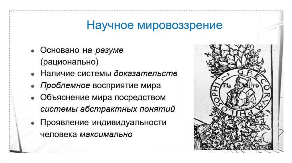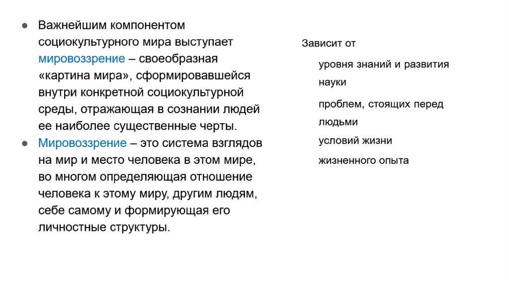 Мировоззрение – это:• Способ объяснения мира и места в