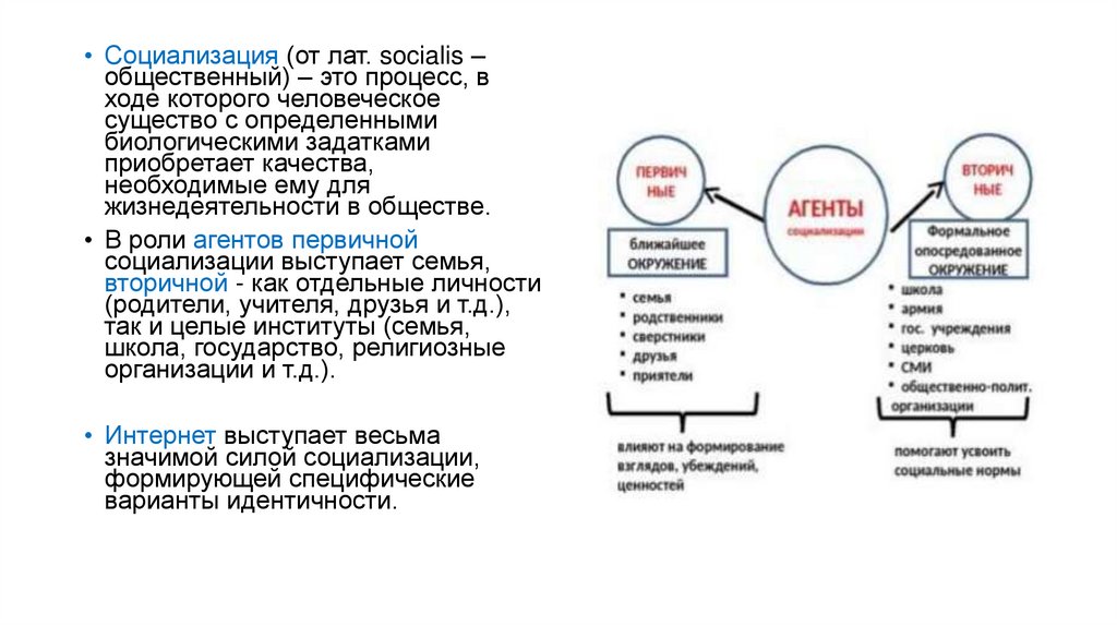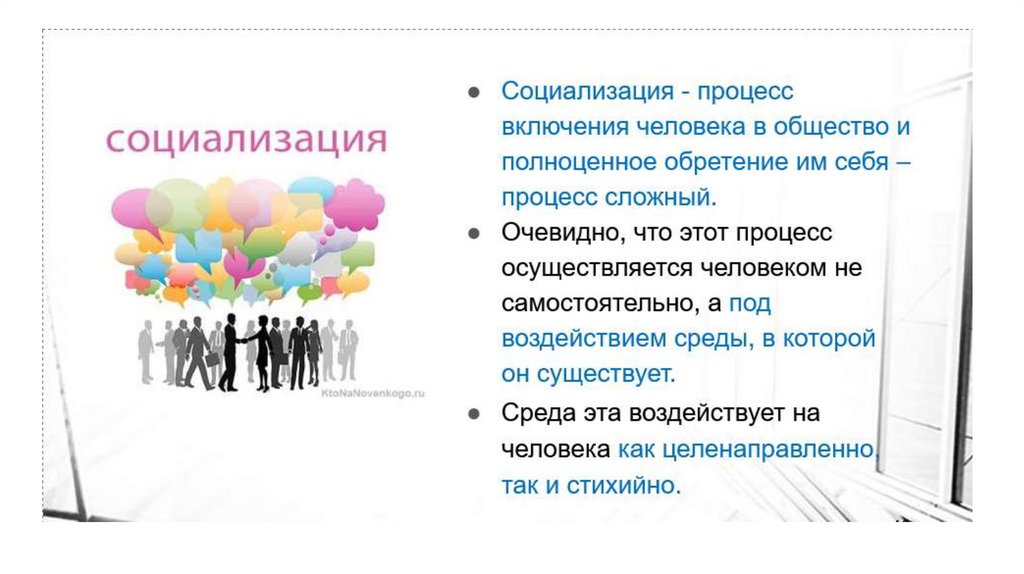 • Социализация (от лат. socialis –общественный) – это процесс, в