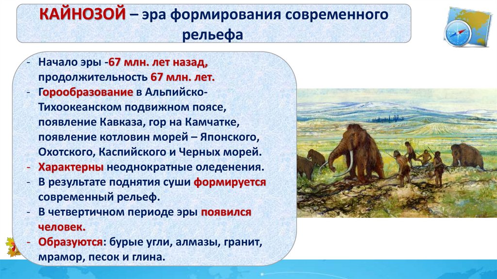 КАЙНОЗОЙ – эра формирования современногорельефа.