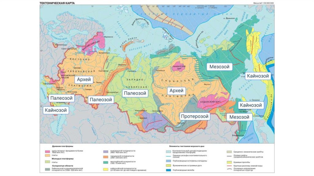 фундаменты Западно-Сибирской, Скифской и Туранской платформ.