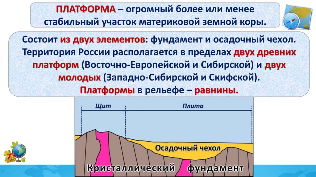 ПЛАТФОРМА – огромный более или менеестабильный участок материковой земной коры.
