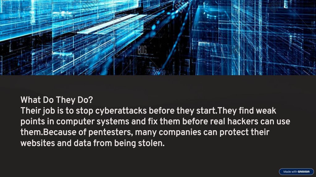 What Do They Do?Their job is to stop cyberattacks before they start.They find weak
